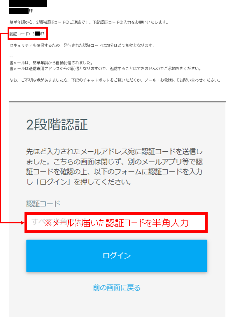開いていた「2段階認証」の画面に入力をします。