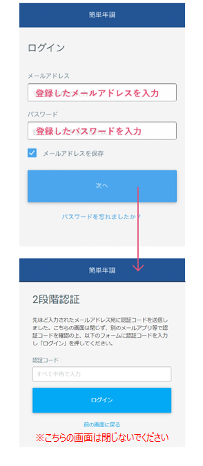 「簡単年調」にメールアドレスを登録(変更)する時は、以下の手順で行います。