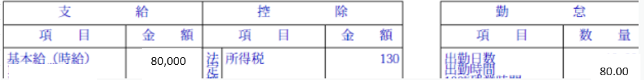 上記の明細の場合は、基本給80,000円÷出勤時間80時間=1,000円が直近の時給です。