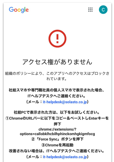 お使いのスマートフォンから証明書申請先(Googleフォーム)にアクセスできないとき 人事総務サポートデスク 2026年03月03日 01:25 更新 証明書の依頼にあたり、「アクセス権がありません」と表示された場合、以下の手順をお試しください。 手順は、こちらのリンクを参照してください。【GWS移行】_Googleフォームが利用できない場合のアクセス手順.pdf 表示内容:例 ℹ️ それでも解決しない場合上記でも解決しない場合は、お手数ですが、以下までご連絡ください。 【GWS移行】_Googleフォームが利用できない場合のアクセス手順.pdf 2 MB ダウンロード 関連記事 💻📜【STELA_人事システム】源泉徴収票が欲しい時・閲覧や印刷をしたい時 【扶養変更】家族を扶養追加・削除するとき 【所得税】「扶養控除等(異動)申告書」の提出期日はいつですか 各種証明書の発行フォームはこちら 【マイナ保険証】の申請・利用登録が知りたいとき コメント 0件のコメント 記事コメントは受け付けていません。